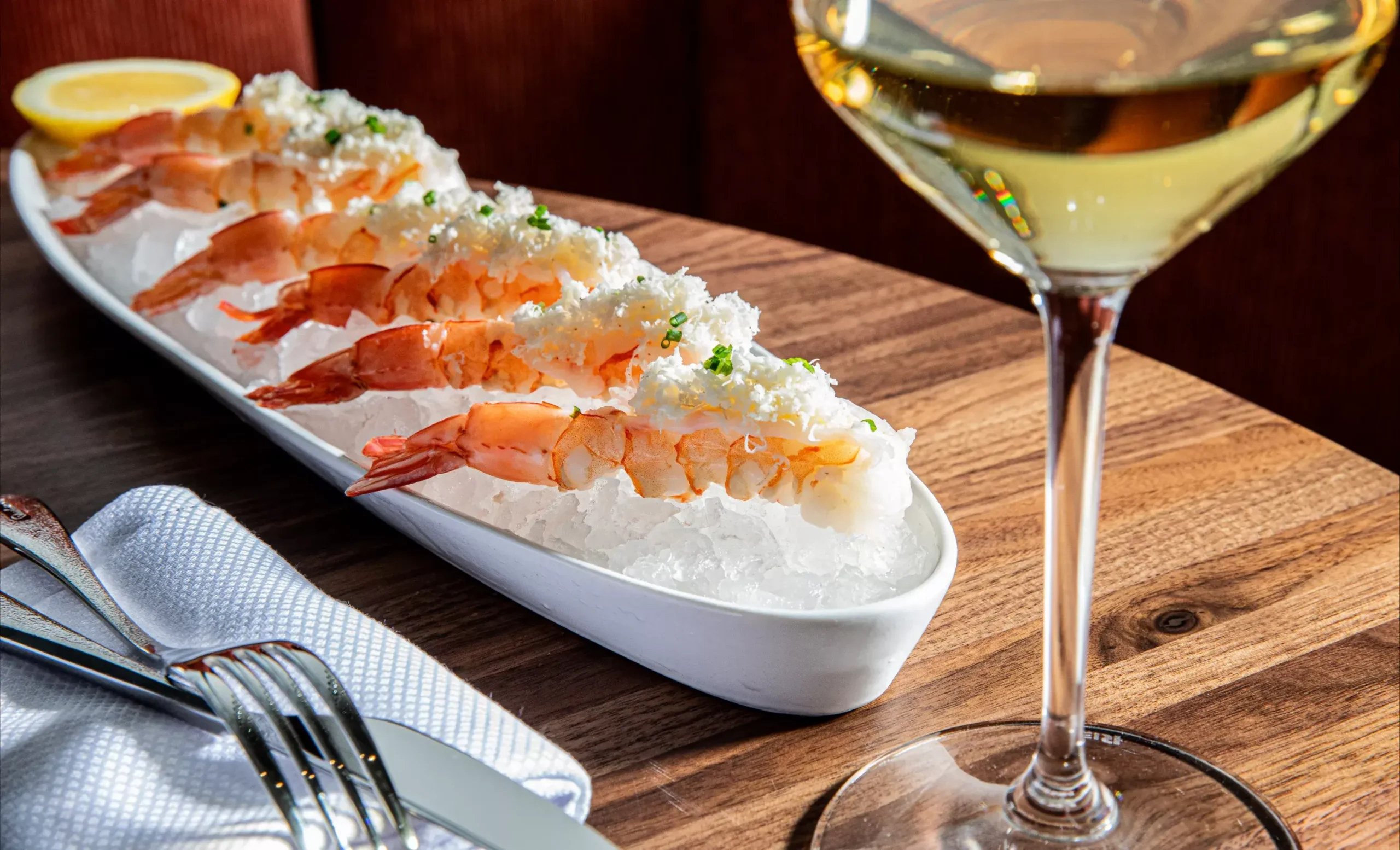 In a spacious setting off East Bay Street in historic downtown Charleston, Marbled & Fin welcomes guests to a stunningly gorgeous space with thoughtfully designed interiors, a lively bar, and an expansive wine room with touches of luxury at every turn.