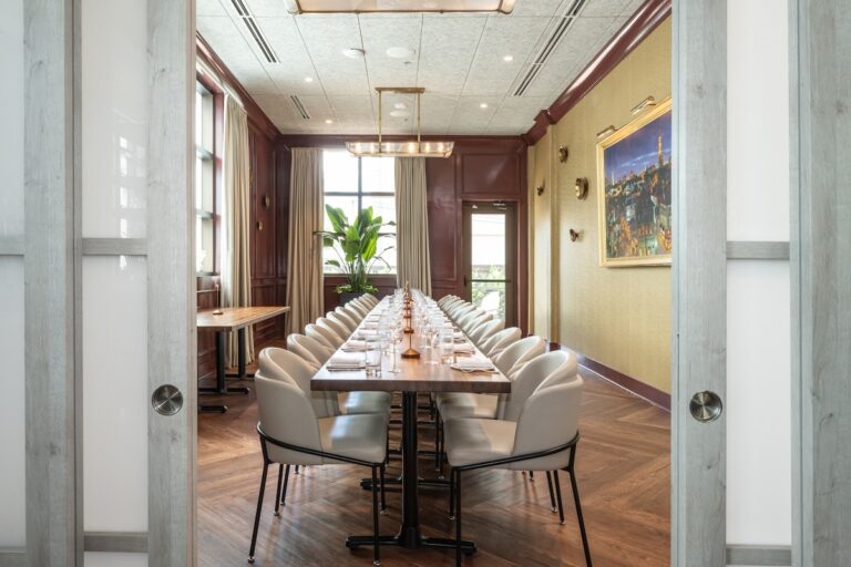 The Burgundy Room at Marbled & Fin is a private dining and event space within our vibrant downtown Charleston steakhouse, offering a customized and exclusive experience. Separated from the main restaurant and bar, the room provides an intimate setting ideal for special gatherings. It accommodates up to 24 guests for seated brunch or dinner events. Along with its cozy ambiance, the space features elegant décor and exceptional service to ensure a memorable occasion. For groups exceeding the private dining capacity, full restaurant buyouts are available upon request to accommodate larger parties.